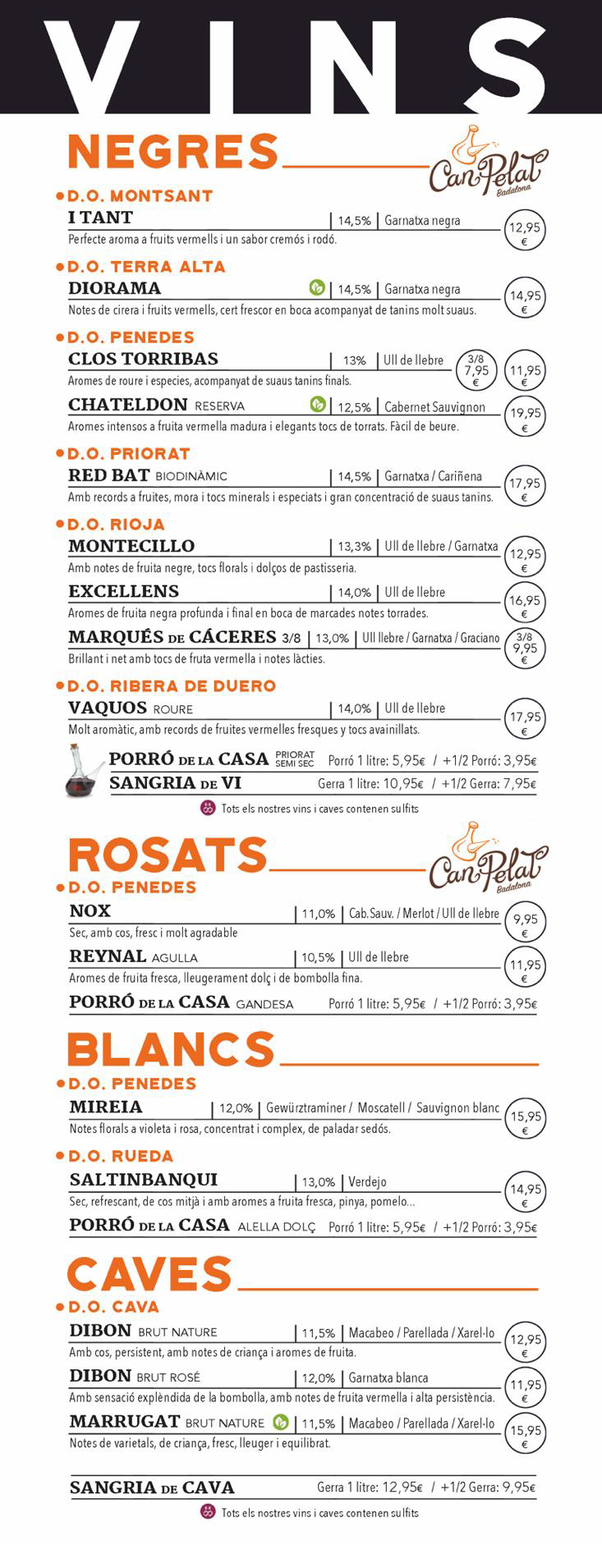 Carta de Vins del Restaurant Can Pelat - Grup Can Pelat