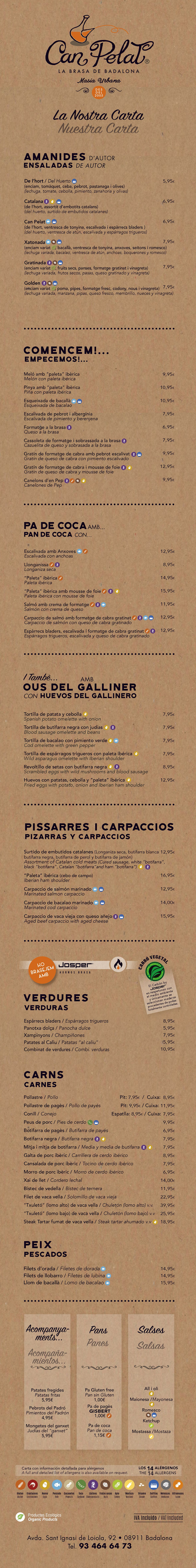 Carta en Catala del Restaurant Can Pelat - Grup Can Pelat