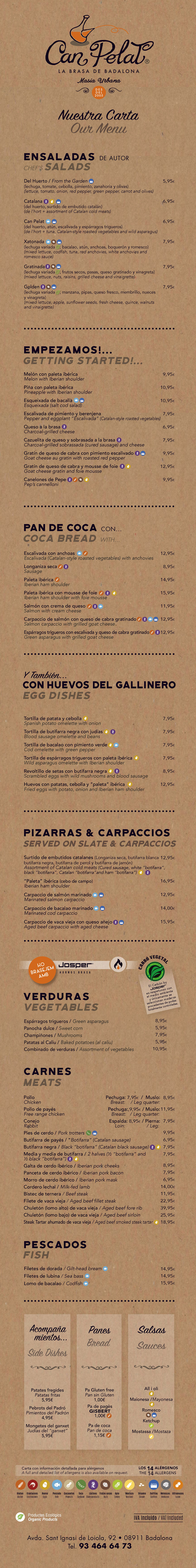 Carta en Castellà i Angles del Restaurant Can Pelat - Grup Can Pelat